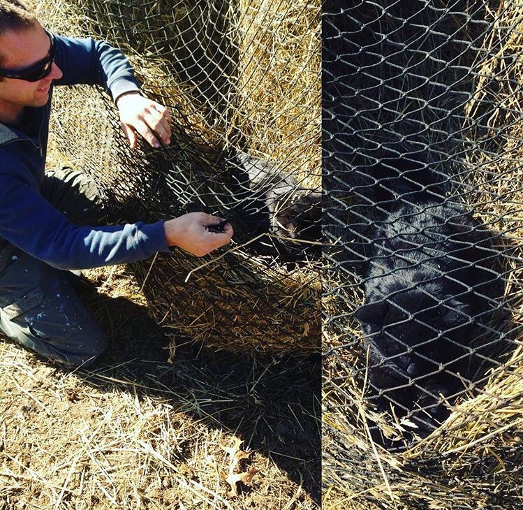 (We still don’t know how he got into this round bale net; it was tied down on every side.)