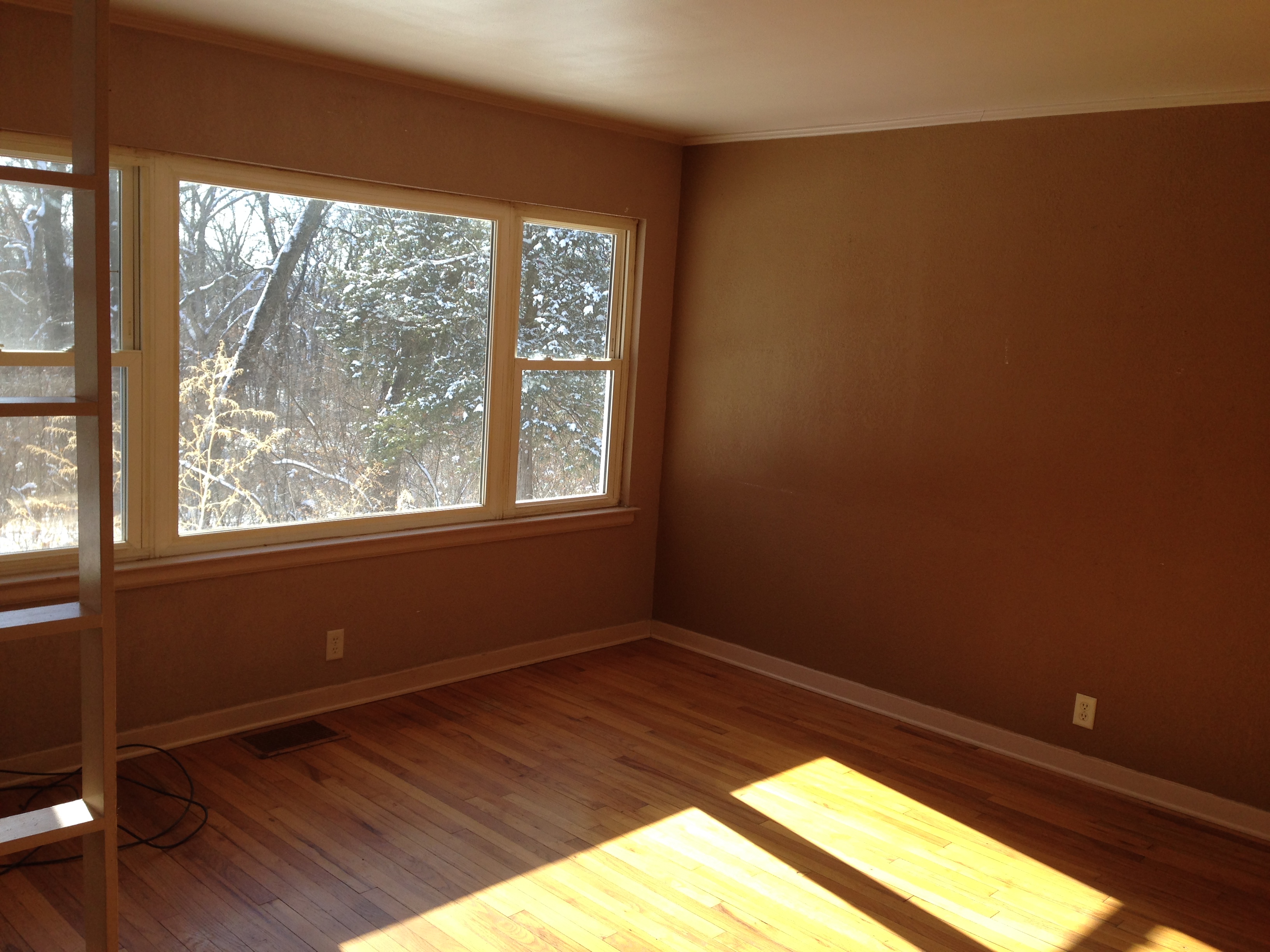The living room actually has pretty nice floors and a beautiful view. It needed a fresh coat of paint.
