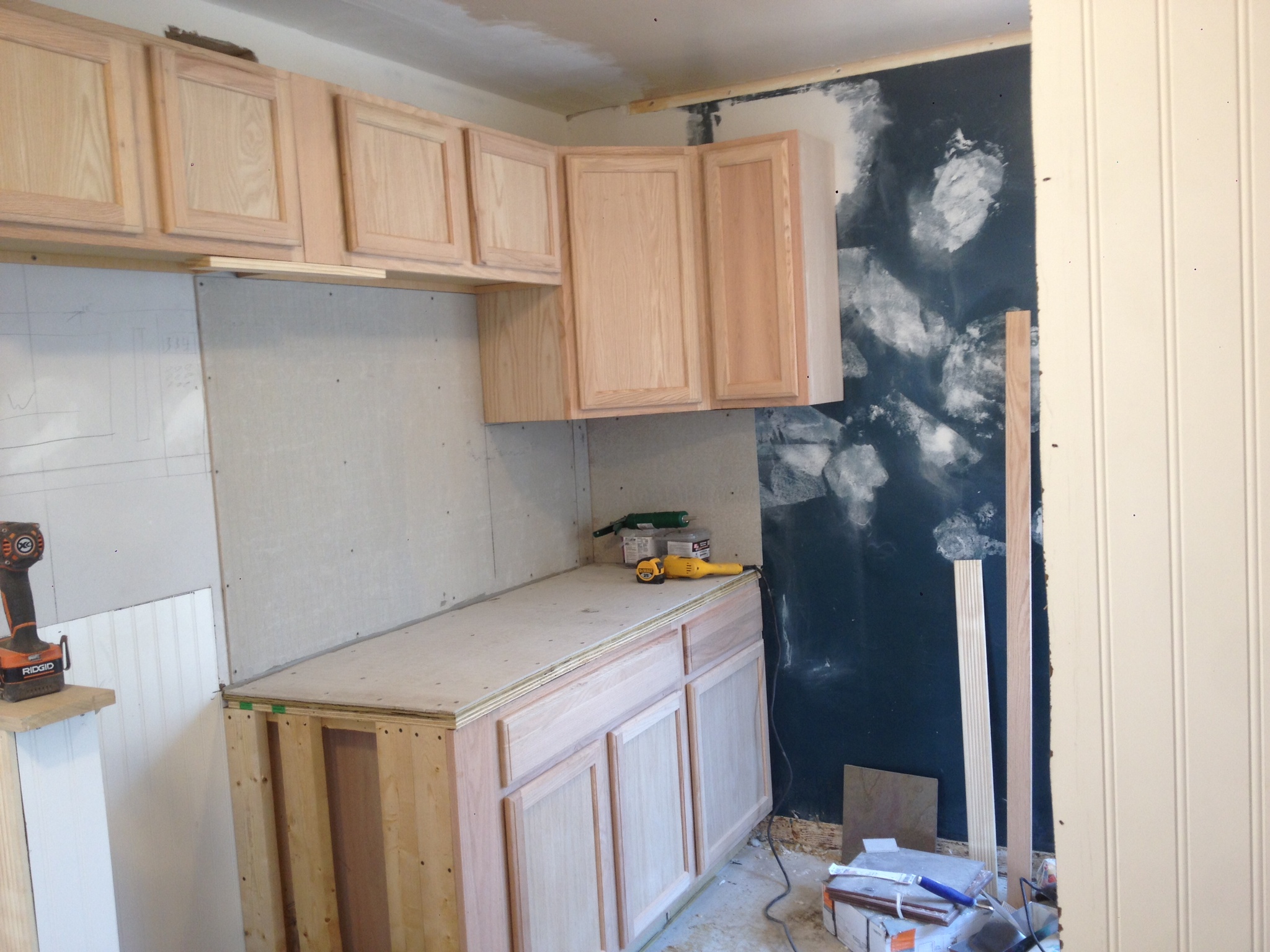 New tub, tile, and backsplash so far. I LOVE the wood tile backsplash. It’s going to look like an old barn!